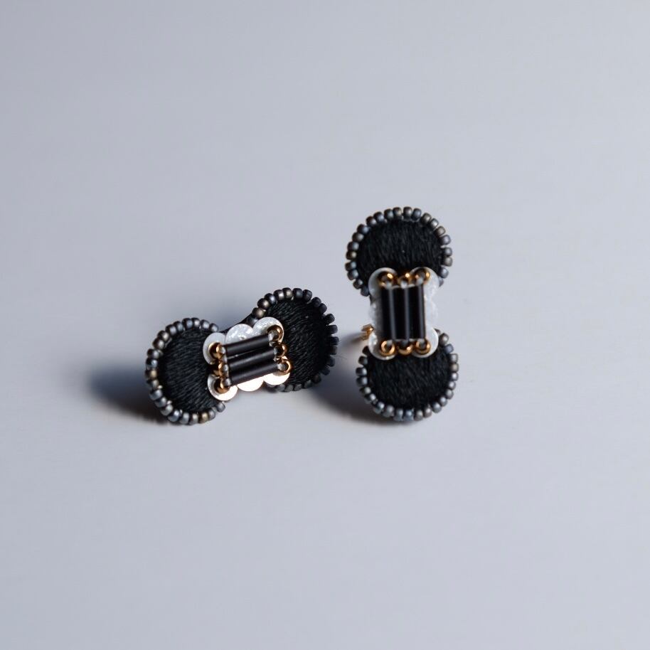 スッキリとしたデザインの中にスパンコールや竹ビーズを重ね、個性をぎゅっと詰め込みました。