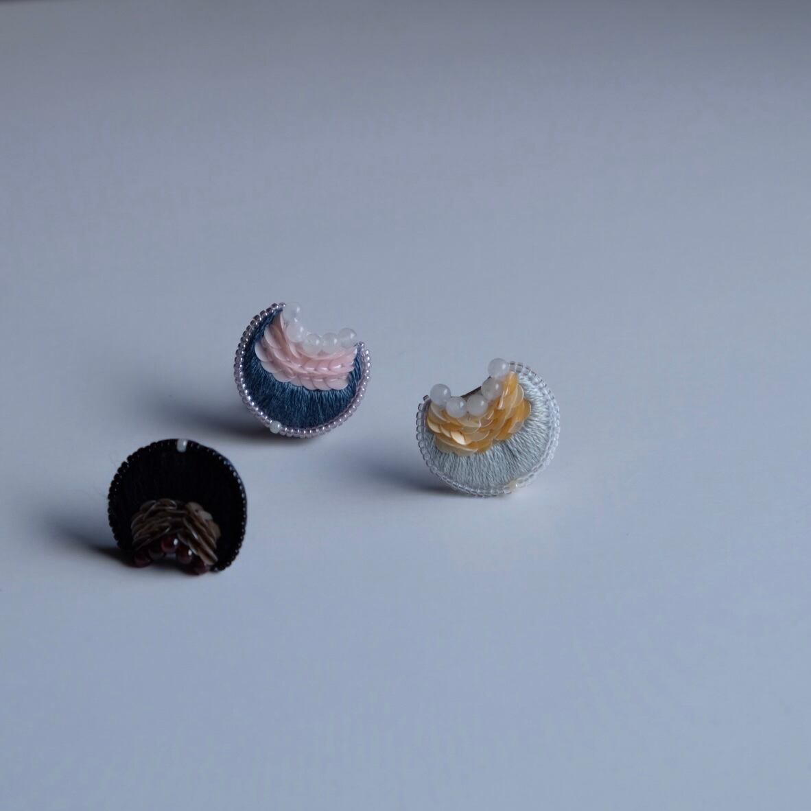 全3色の外周に共通して混ぜた1粒のクリーム色のビーズも、ワンポイントとして注目してみてください。