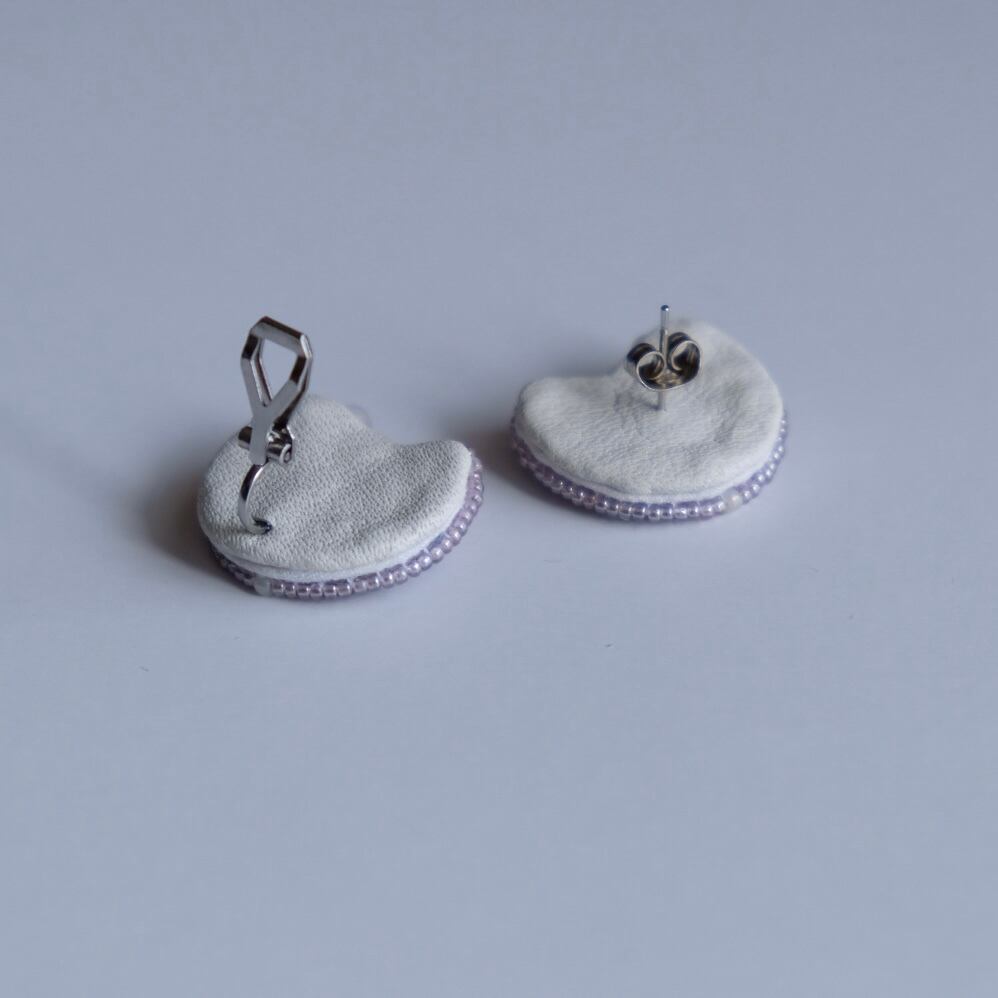 外周に使用した透け感のある紫色のビーズが光を反射し、耳元を輝かせてくれます。