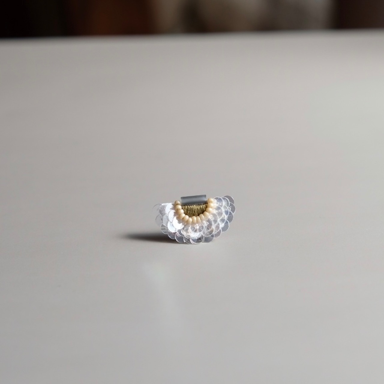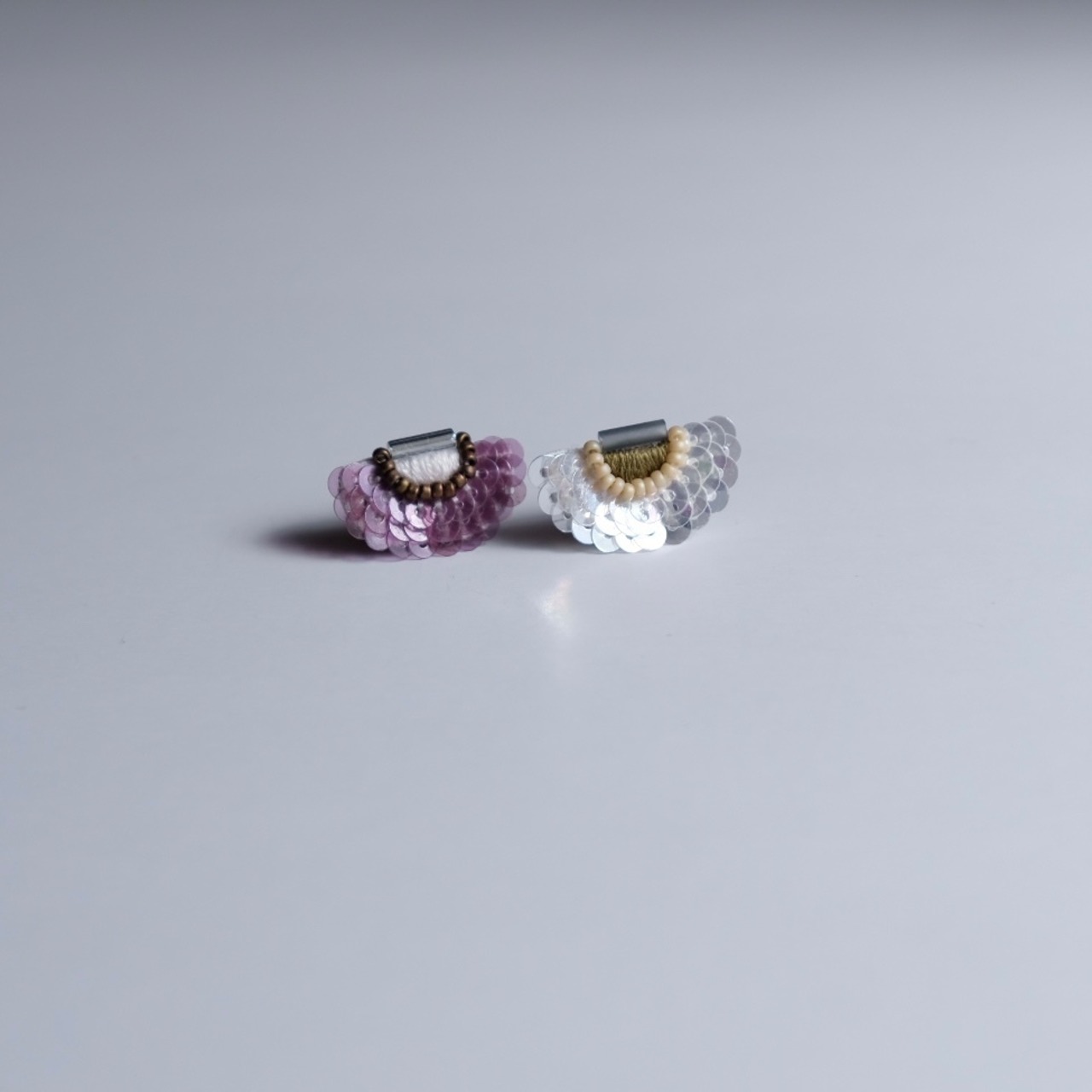 アーチ状に広がるスパンコールが光を反射し、まばらに輝きます。透け感あるスパンコールの色の濃淡もお楽しみください。
